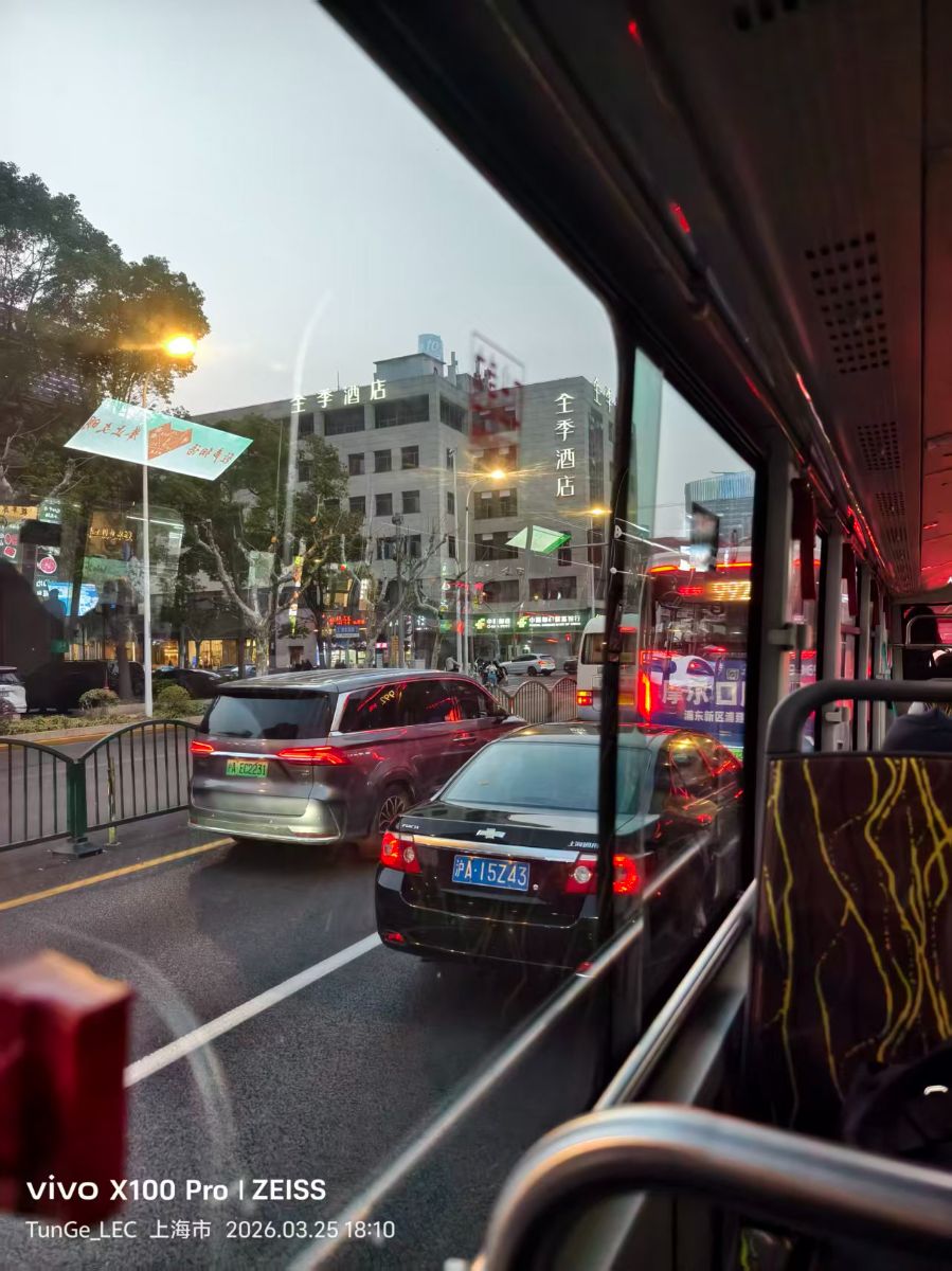 暮色初临,上海的街头正切换成流动的光影画卷。从公交车靠窗向外望去,晚高峰的车流在道路上缓缓涌动,定格出最真实的都市烟火气。