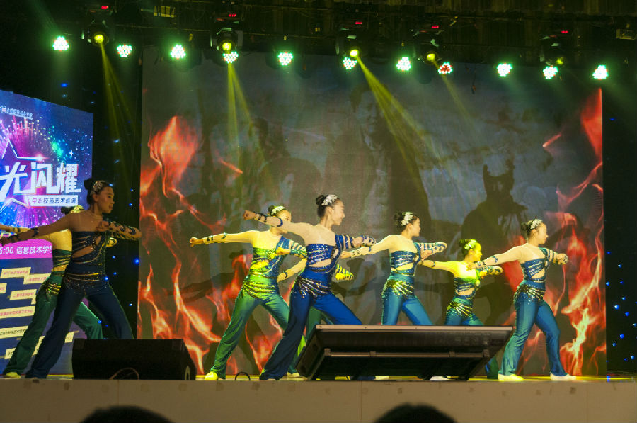 一入场,放眼望去,舞台布置的十分华丽,完美的衬托了主题“星光闪耀”。第一个出场表演的节目是由上海信息技术学校带来的:汉舞《礼仪之邦》,充分展示了上海信息技术学校作为东道主的热情。