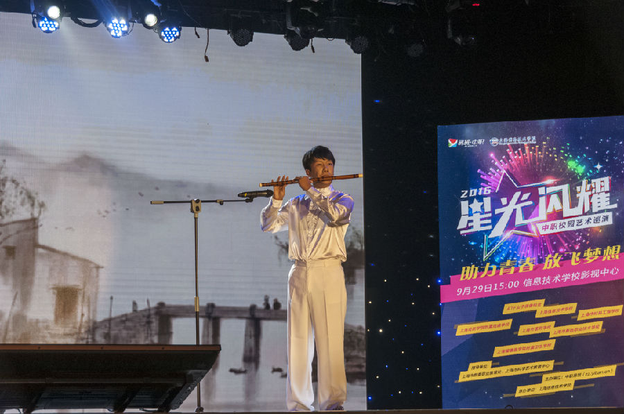随着第一场演出的结束。上海材料工程学校为观众带来了一曲独奏《姑苏行》曲音委婉动听,给人一种置身其中的感觉。