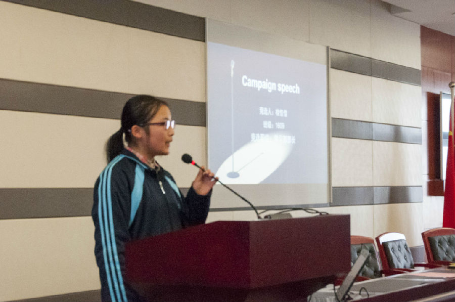 最后,在主持人有序的组织下,干部候选人依次上台进行竞选演讲,台下学生代表们则进行公平投票。经过一个小时的竞选演讲,最终涌现出23名新一届的学生会干部。