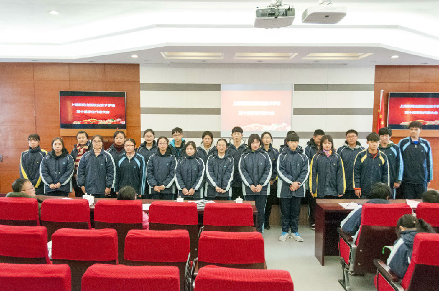 2016年12月30日10点,上海新闻出版职业技术学校第十届学生代表大会,在教学楼四楼阶梯教室召开。多名校领导老师出席了本次会议。第九届学生会主席、学生代表以及学生会干部候选人也都参加了本次会议。