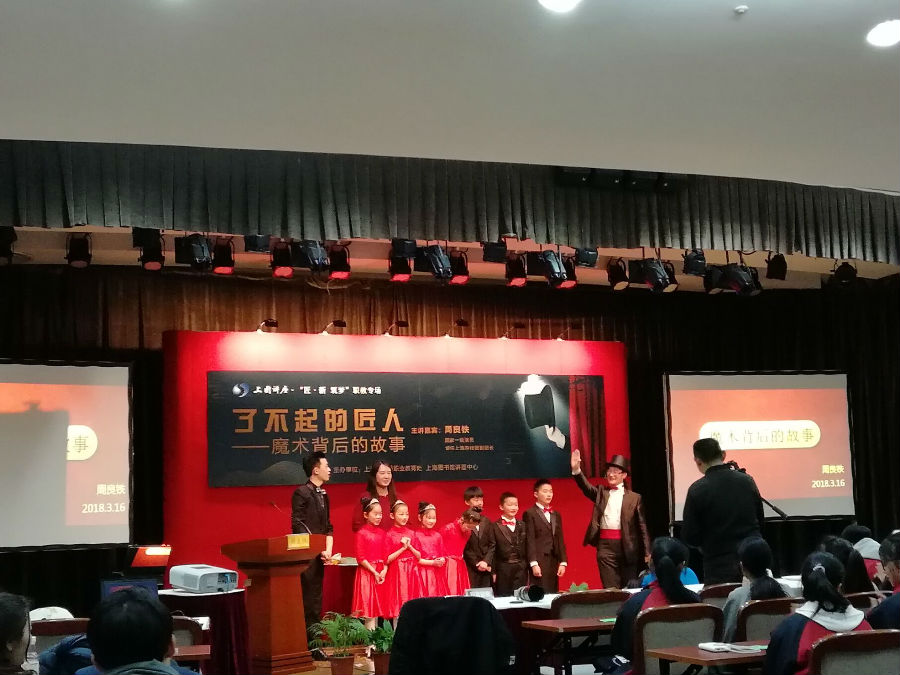 316下午,我校16级数字出版专业学生随老师一起来到上海图书馆参加周良铁先生的“了不起的匠人——魔术背后的故事”讲座