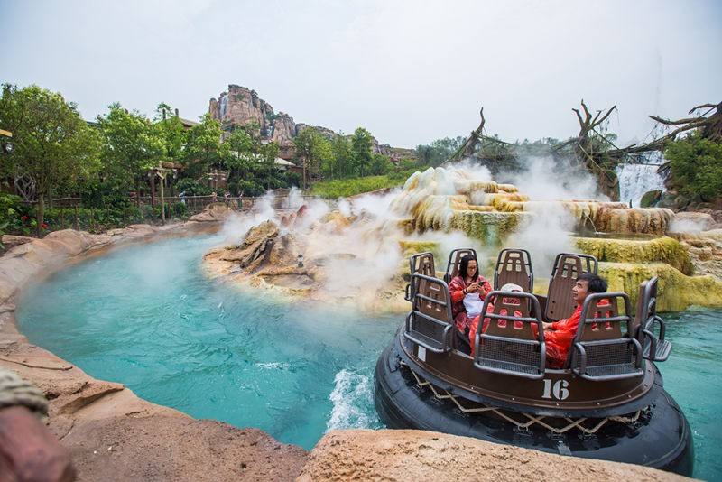 这个项目让我又爱又恨啊。一开始以为是类似激流勇进的存在,结果并不是,最惨的是我买了雨衣,还是淋湿了,淋湿的不是人而是鞋子。当你玩这个项目时候,它会像激流勇进一样往上升,就在你以为它要往下的时候,前方却是平的,接下来你会进入到非常黑的一个地方,啥都看不见,也就是在那里,一大波水啪叽从护栏那里涌过来,然后,鞋子就如同浸在水潭里一般,全湿透了。但这个项目还是很凉爽的,当你玩好之后,哪怕穿了雨衣,你也会一身清凉!