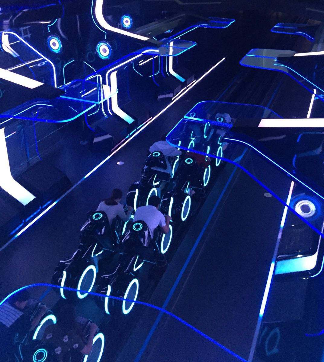 这个项目我相信喜欢玩过山车之类的同学应该会喜欢。上次去玩的时候,很幸运,玩了两三次都没有多少人排队。而且就算排队,也不用怕,里面很凉快,而且装饰的非常炫酷,当你等的时候,还可以仔细欣赏下它的整个布局。我玩的时候,就有一种自己在开摩托车的感觉,而且还是超速的那种,它全程都会很快,中间会稍微停下,然后在猛地往前冲,带给你飞一样的感觉,整个玩下来,超爽的。还是很推荐的!