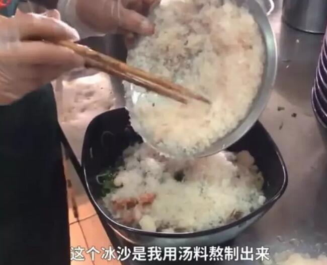 工作人员称冰沙是用熬的汤料急冻后敲碎做的,吃完不会拉肚子。冰镇的还可节省同学们的用餐时间,夏天吃解暑。