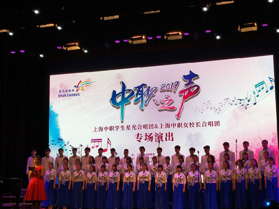 6月12日的晚上7点,在徐汇区青少年活动中心剧场中,“中职之声”专场演出,由上海中职学生星光合唱团与上海中职女校长合唱团合作为我们带来演出。在此场演唱会中,除了由《我和我的祖国》《国家》等爱国歌曲;也有《YOU Raise Me Up》《红红的玫瑰》等经典老歌;更有《来日之歌》《大鱼》等流行歌曲。给人带来的感官体验是前所未有的雄伟壮观。