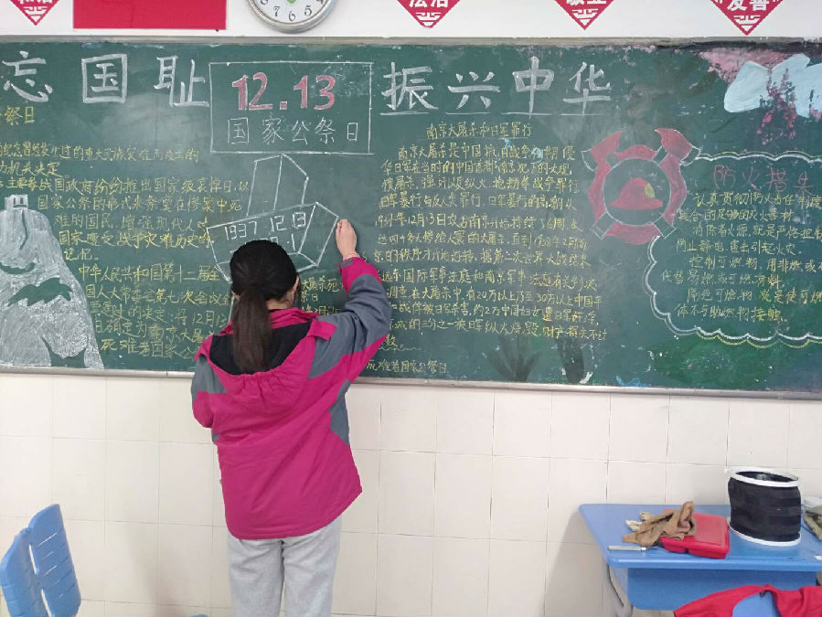 快看看同学们认真出黑板报的样子