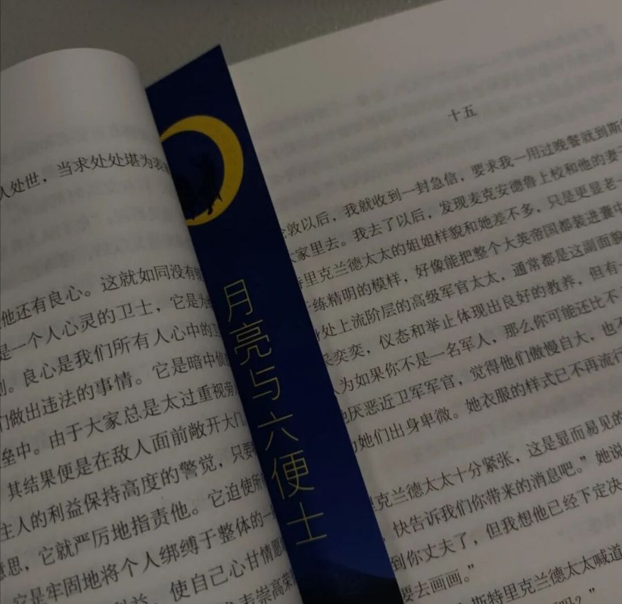 月亮与六便士,我一直对这个名字是分困惑,直到我读完后才明白,原来月亮是指高高在上的理想。六便士是指大约六毛钱人民币,深陷泥中,也就是世俗的生活。让我们译后后记所说的人生如梦,让我们枕着月亮。毛姆笔下的主人公斯特里克兰。就不断的追求自己的理想,在深黑的夜中不断挥舞着手臂,想摘下那皎洁的明月,果断放弃了六便士。但……月亮是那么好摘得吗?
