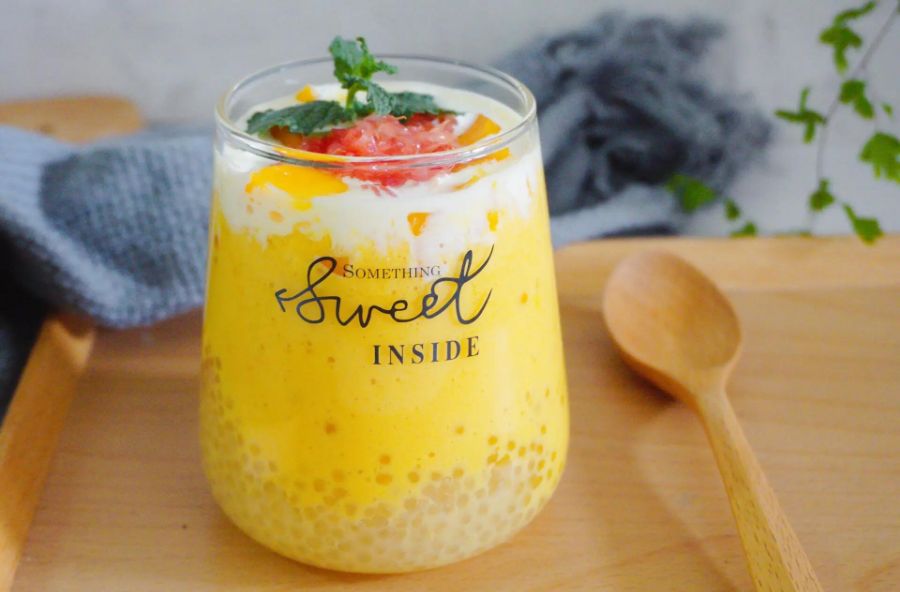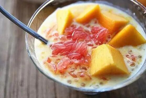 杨枝甘露所含材料有:西米、芒果、西柚、椰汁、鲜奶油(或淡奶)及糖。