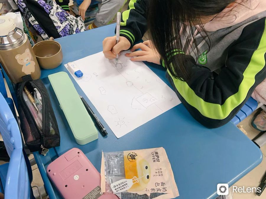我们进行了小组画画传递游戏,并由一个人讲解整幅画的故事