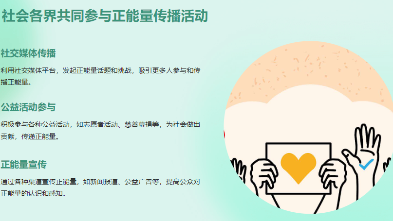 学会传播正能量,是点亮生活光芒的钥匙。在纷扰的世界中,让我们成为那一抹温暖的光,用微笑和鼓励驱散阴霾,用积极和乐观感染他人。每一次善意的传递,都是对美好世界的贡献;每一句正能量的话语,都能激发内心的力量。让我们携手同行,在生活的每一个角落播撒爱与希望,共同营造一个更加温馨、和谐的社会。同学们请记住,你的每一次正能量传播,都可能成为他人生命中不可或缺的光芒。