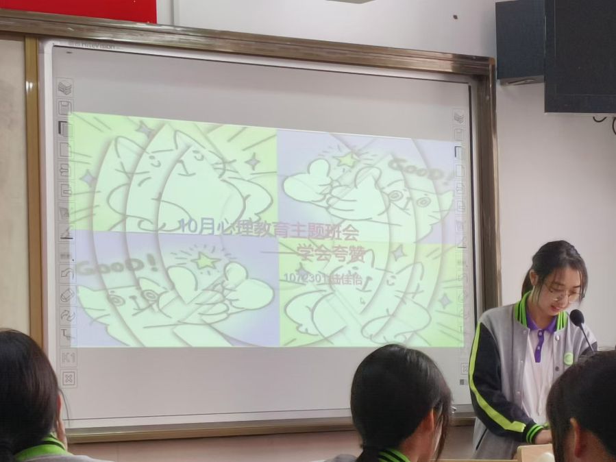 今天我们进行了心理主题班会 在紧张而多彩的学习生活中,每位同学都是独一无二的存在,拥有各自独特的才华与魅力。然而,面对学业的压力与社交的挑战,同学们往往容易忽视或低估自己的价值。本次心理主题班会旨在通过一系列精心设计的活动,引导同学们深入挖掘并展现自我闪光点,增强自信心,促进班级内部的相互理解和尊重,共同营造一个积极向上、和谐友爱的学习环境。每位同学都写了班中一位同学的闪光点,并且进行小游戏更好的认识到别人的闪光点,这次班会我们学到了很多,使我们班级更加团结,友善。
