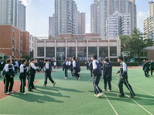 塑胶操场上,长绳如银蛇穿梭,同学间的呐喊与绳击地面的脆响交织,这场八字长绳比赛看得人热血沸腾。