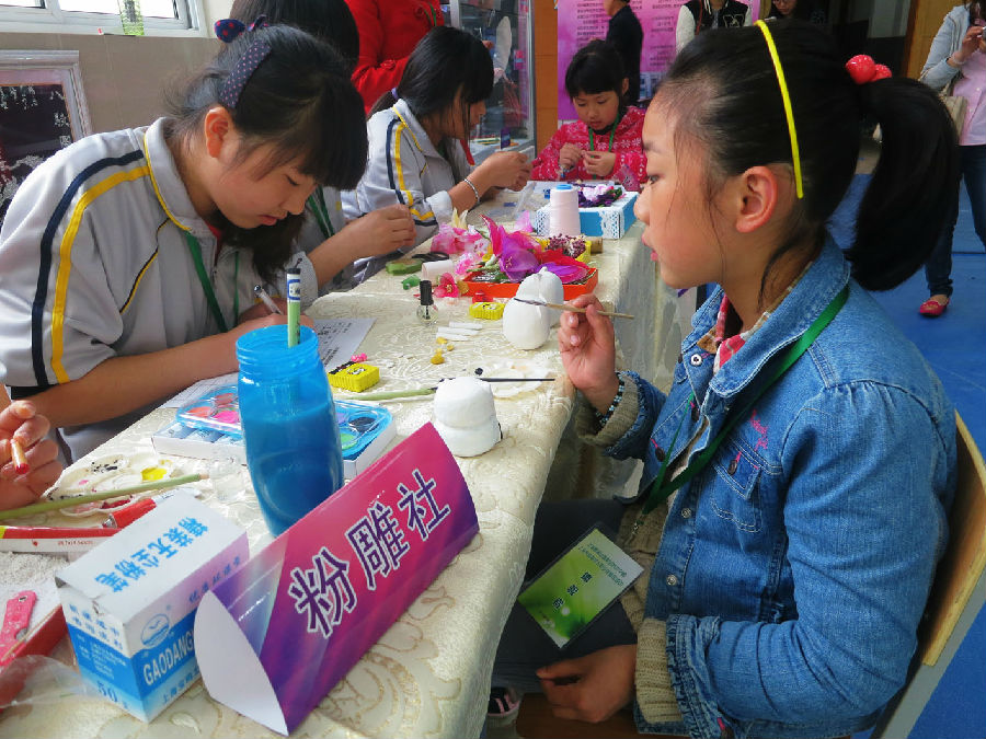 前来参观体验的人群中,既有一、二年级的小朋友,也有初中的学生;既有学校的老师,也有陪同孩子前来的爸爸妈妈甚至爷爷奶奶;既有我校附近的学校学生,也有浦东、松江等地区的中小学生乘车前来参加。在项目体验过程中,工作人员、志愿者与参观者的互动积极热情,当完成一件作品时,孩子们的脸上都洋溢着快乐和满足的笑容。学校小记者通过采访得知,很多家长都是通过微信了解到这个项目,并非常乐意利用周末时间带自己的孩子来参加职业体验。他们认为这样的职业体验日活动开辟了一个了解职业的通道,有利于孩子的职业启蒙,也有利于让孩子提高动手和实践能力,并希望这样的活动能一直办下去。当被问到未来孩子如何选择职业时,接受采访的家长大都表示由孩子自己做主。