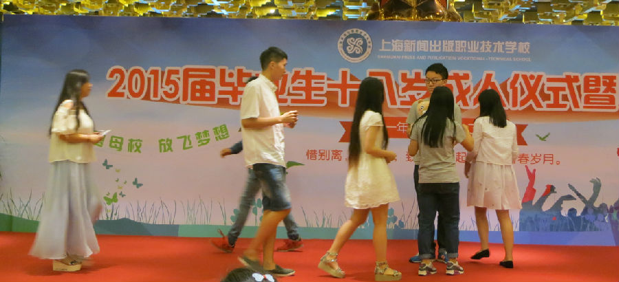 2015626日,2012届毕业生相约在松江月湖雕塑公园,举行2015届“上海新闻出版职业学校十八岁成人仪式暨毕业典礼” 9:30分,十八岁成人仪式暨毕业典礼正式拉开序幕。
